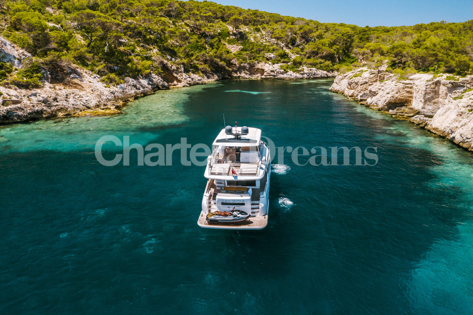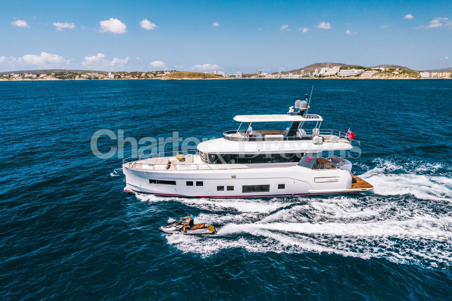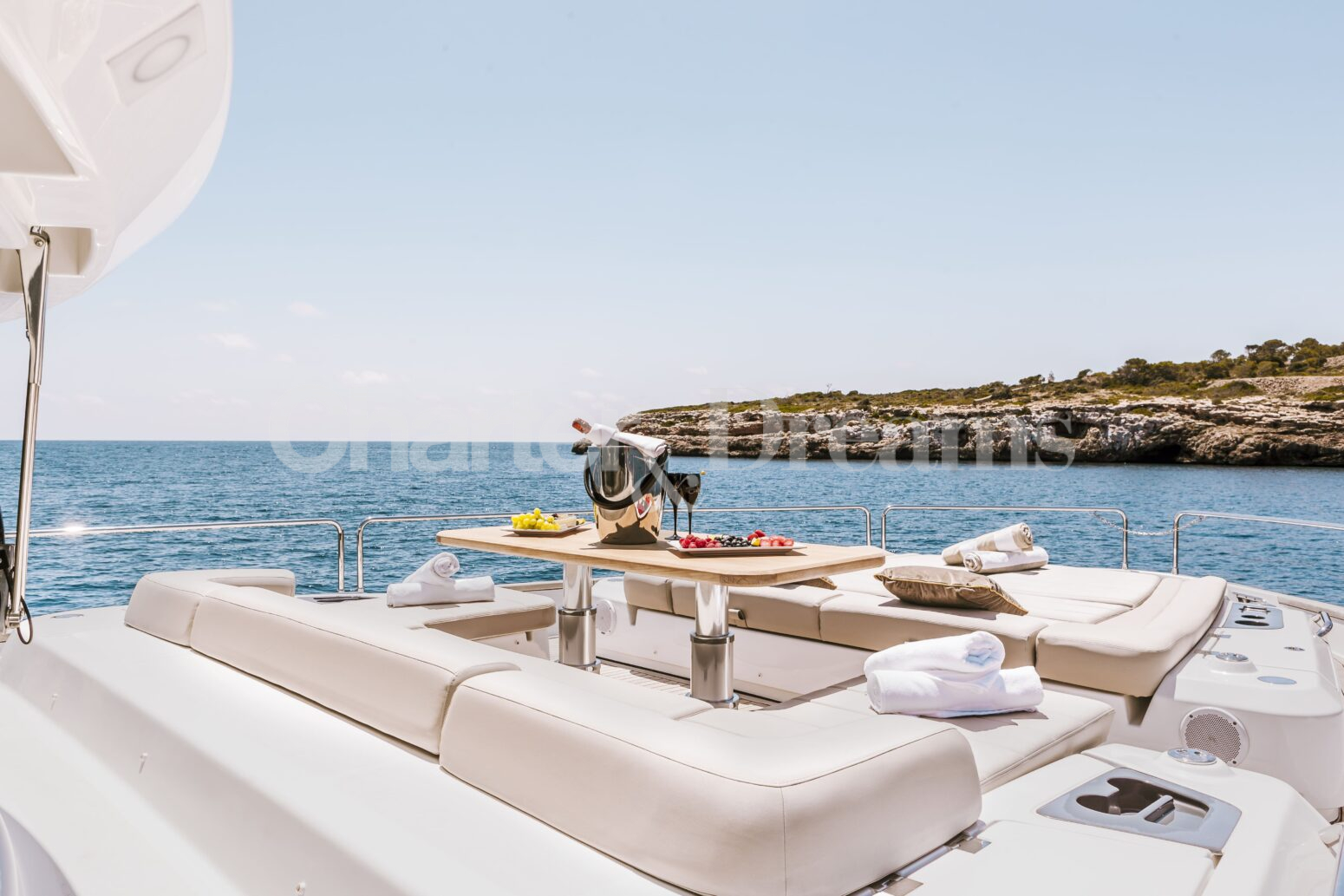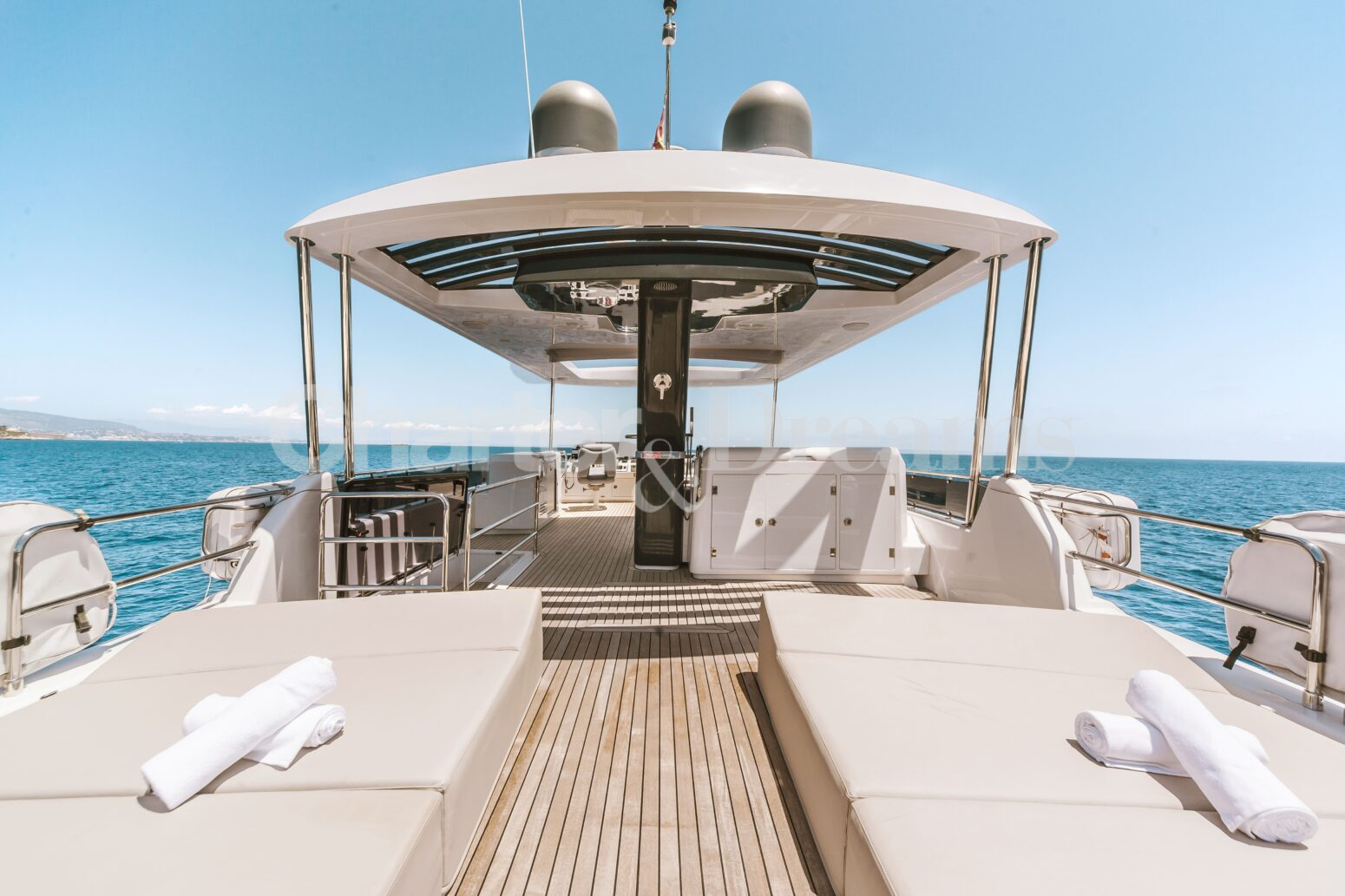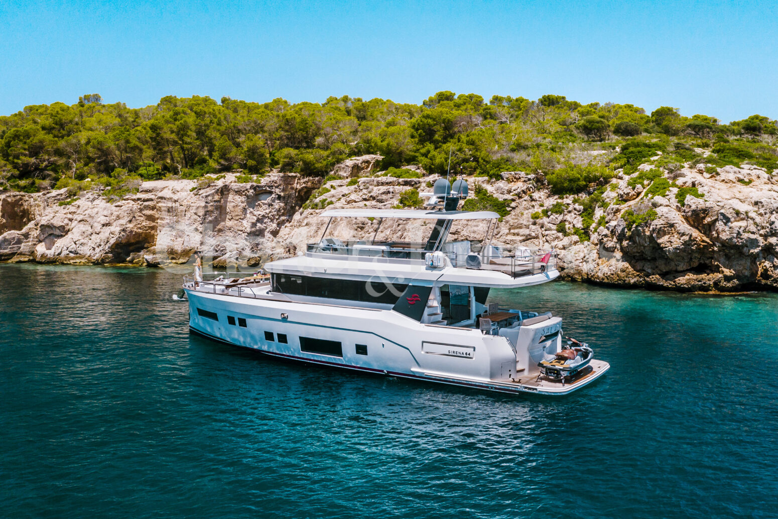 Gehen Sie an Bord von SALACIA, einer eleganten Sirena 64 mit 21 Metern Länge, die für entspannte Tage auf dem Wasser rund um Mallorca, Ibiza und Formentera konzipiert ist.