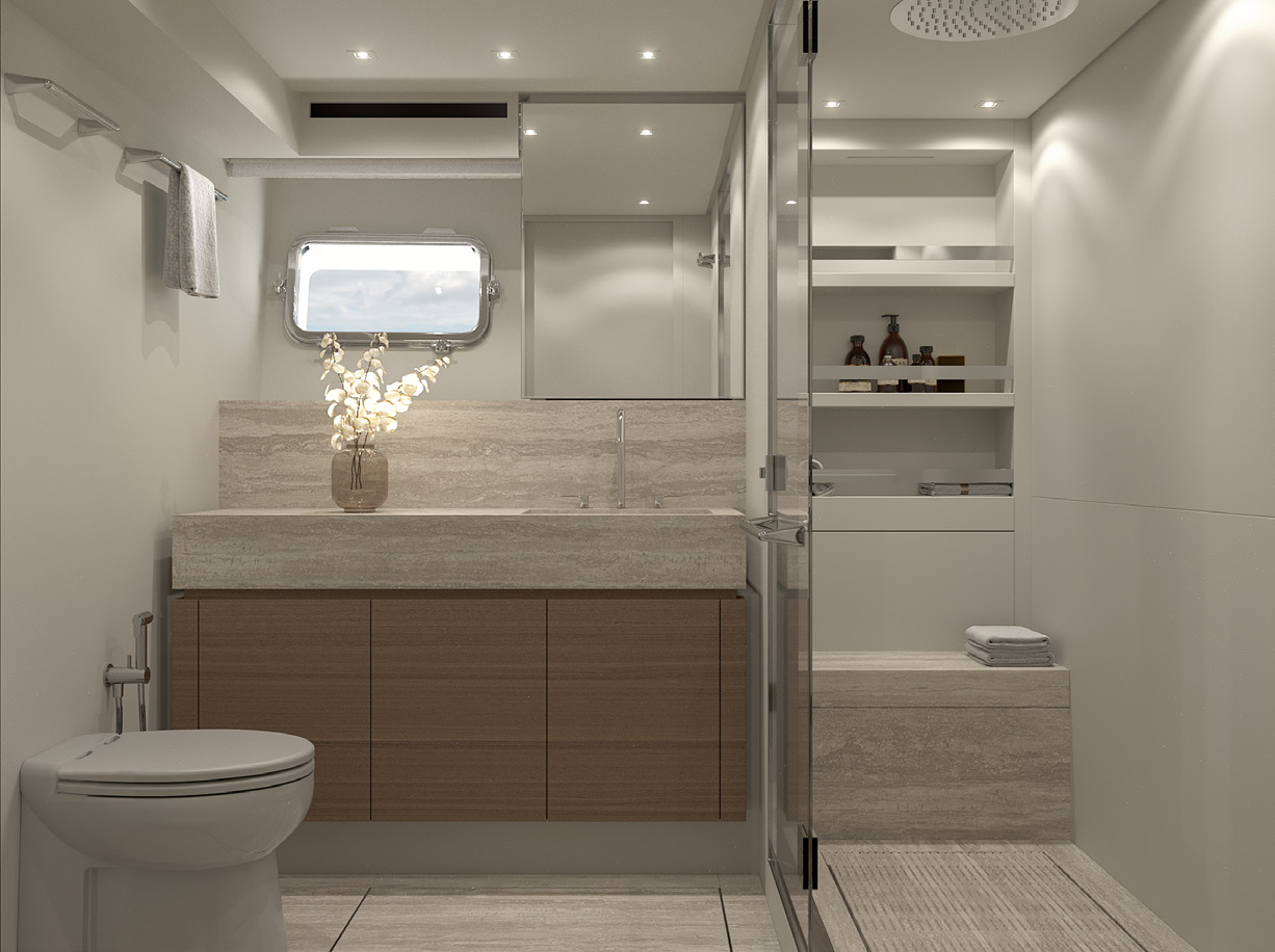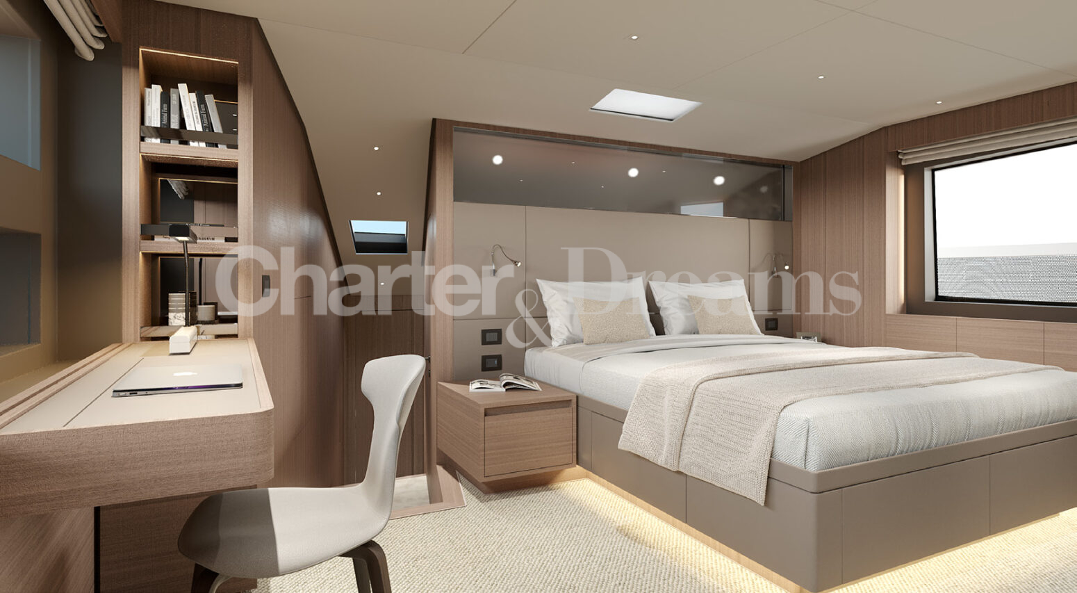 With four elegant en-suite cabins accommodating 8 guests, plus additional space for 2, Michisan combines privacy and comfort with a modern, sophisticated interior. The saloon, flooded with natural light from panoramic windows, creates a relaxed yet refined atmosphere, ideal for lounging or entertaining.